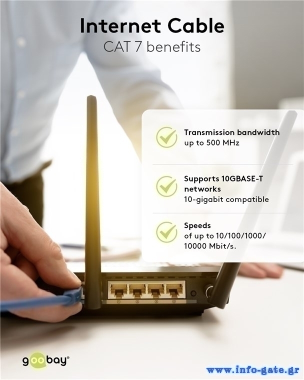 Τα καλώδια δικτύου της Goobay κατασκευάζονται από ποιοτικά υλικά, με τις υψηλότερες τεχνικές προδιαγραφές, προσφέροντας αξιόπιστη λειτουργία υψηλής απόδοσης, με αντοχή στον χρόνο.