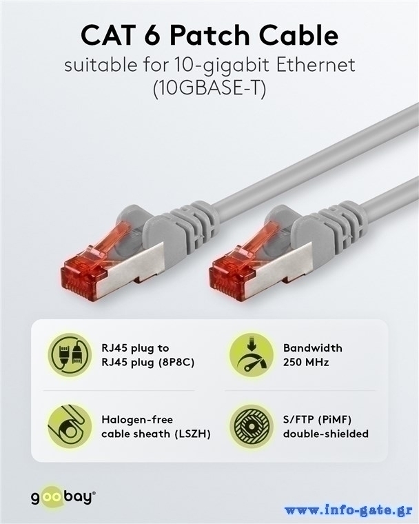 GOOBAY καλώδιο δικτύου 50886, CAT 6 S/FTP, copper, 250MHz, 1m, γκρι