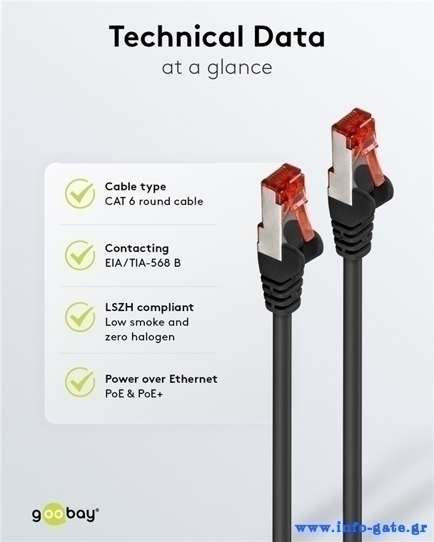 Τα καλώδια δικτύου της Goobay κατασκευάζονται από ποιοτικά υλικά, με τις υψηλότερες τεχνικές προδιαγραφές, προσφέροντας αξιόπιστη λειτουργία υψηλής απόδοσης, με αντοχή στον χρόνο.