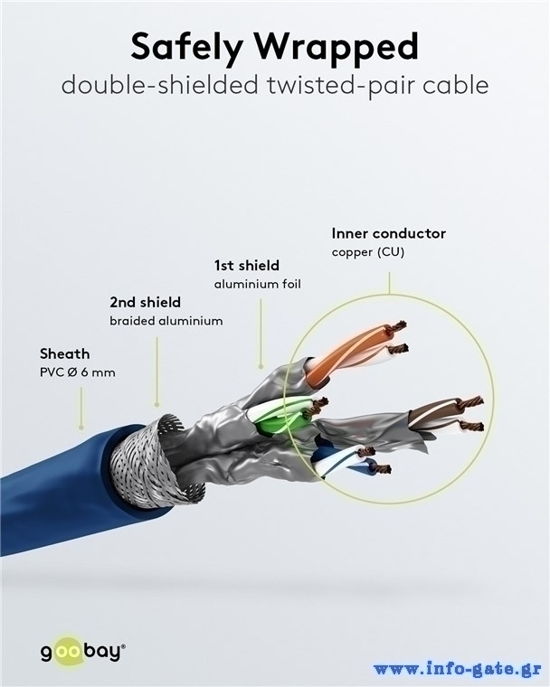 Τα καλώδια δικτύου της Goobay κατασκευάζονται από ποιοτικά υλικά, με τις υψηλότερες τεχνικές προδιαγραφές, προσφέροντας αξιόπιστη λειτουργία υψηλής απόδοσης, με αντοχή στον χρόνο.