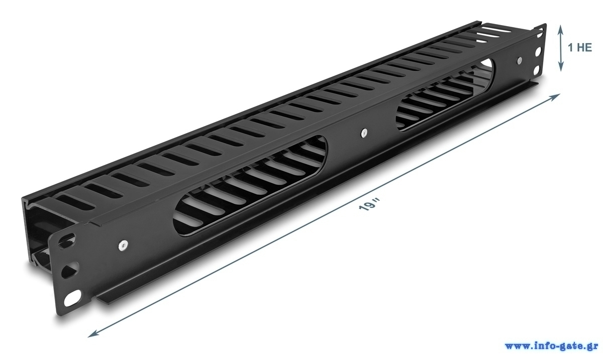 Cable management της Delock κατάλληλο για τοποθέτηση σε 19" καμπίνες rack. Διαθέτει ανοίγματα στο πάνω και κάτω μέρος αλλά και 2 μεγάλα ανοίγματα στο πίσω μέρος για να περνούν τα καλώδια.