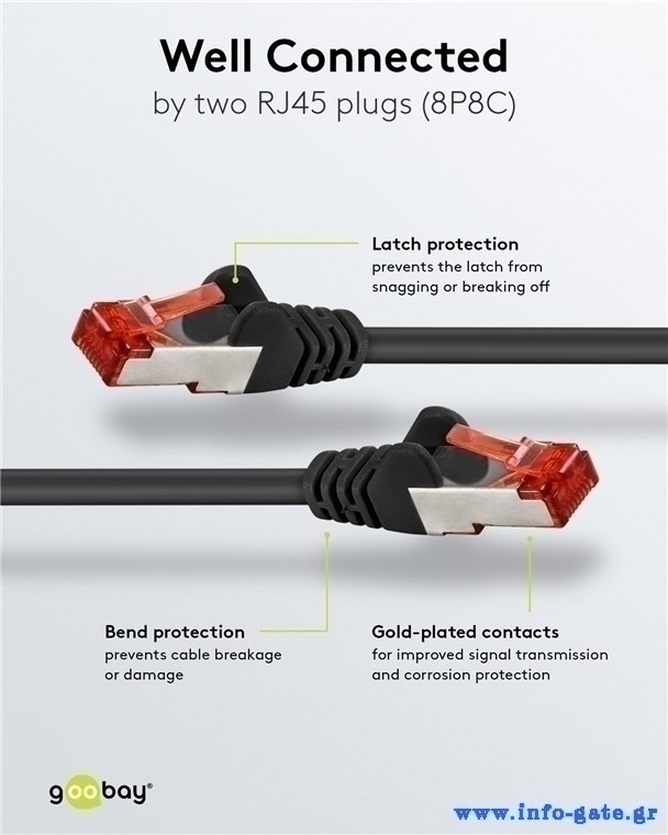 Τα καλώδια δικτύου της Goobay κατασκευάζονται από ποιοτικά υλικά, με τις υψηλότερες τεχνικές προδιαγραφές, προσφέροντας αξιόπιστη λειτουργία υψηλής απόδοσης, με αντοχή στον χρόνο.