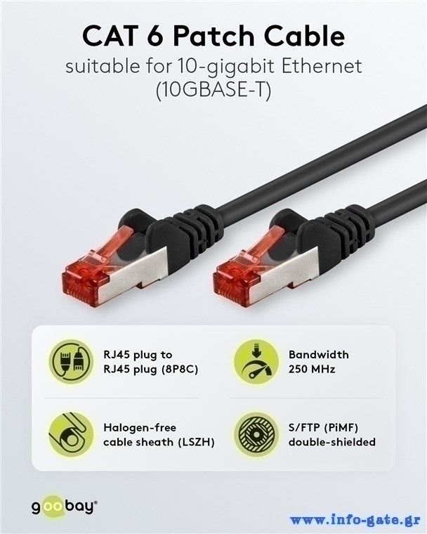 GOOBAY καλώδιο δικτύου 95584, CAT 6 S/FTP, copper, 250MHz, 1.5m, μαύρο