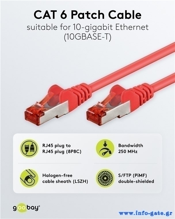 GOOBAY καλώδιο δικτύου 92458, CAT 6 S/FTP, copper, 250MHz, 0.15m, κόκκινο