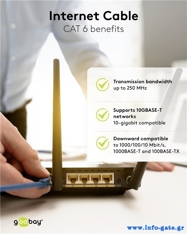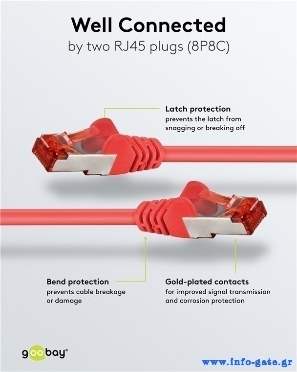 Τα καλώδια δικτύου της Goobay κατασκευάζονται από ποιοτικά υλικά, με τις υψηλότερες τεχνικές προδιαγραφές, προσφέροντας αξιόπιστη λειτουργία υψηλής απόδοσης, με αντοχή στον χρόνο.