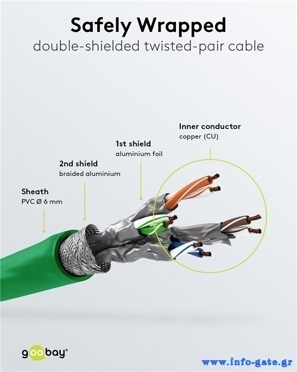 Τα καλώδια δικτύου της Goobay κατασκευάζονται από ποιοτικά υλικά, με τις υψηλότερες τεχνικές προδιαγραφές, προσφέροντας αξιόπιστη λειτουργία υψηλής απόδοσης, με αντοχή στον χρόνο.