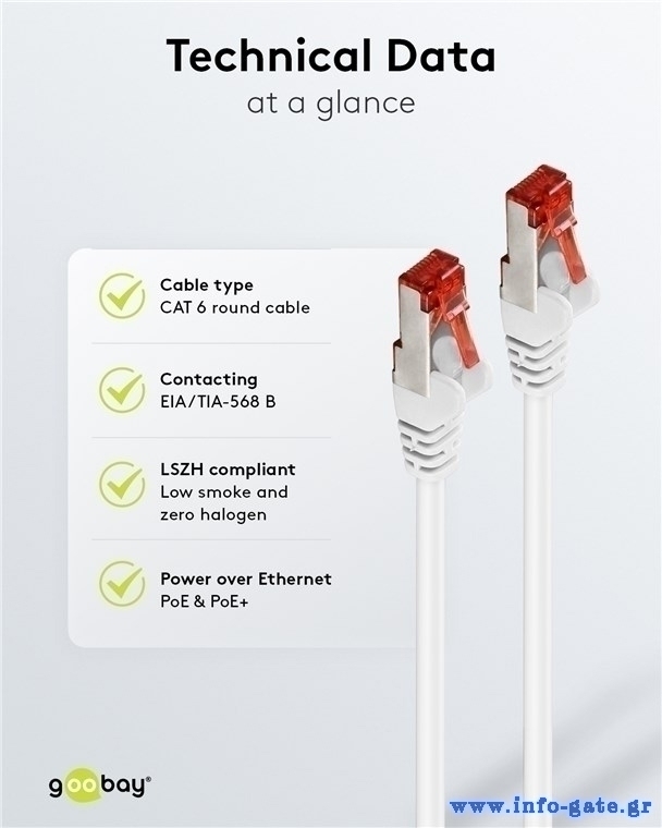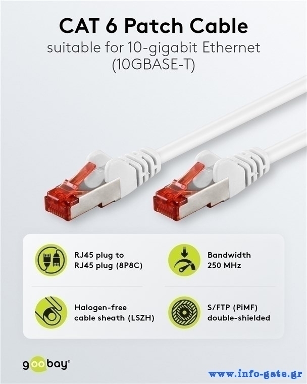 GOOBAY καλώδιο δικτύου 95587, CAT 6 S/FTP, copper, 250MHz, 1.5m, λευκό