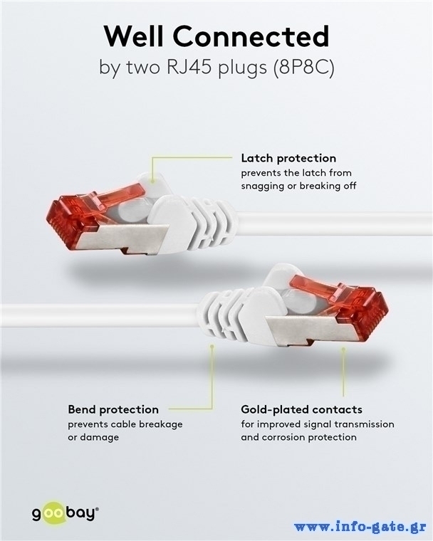 Τα καλώδια δικτύου της Goobay κατασκευάζονται από ποιοτικά υλικά, με τις υψηλότερες τεχνικές προδιαγραφές, προσφέροντας αξιόπιστη λειτουργία υψηλής απόδοσης, με αντοχή στον χρόνο.