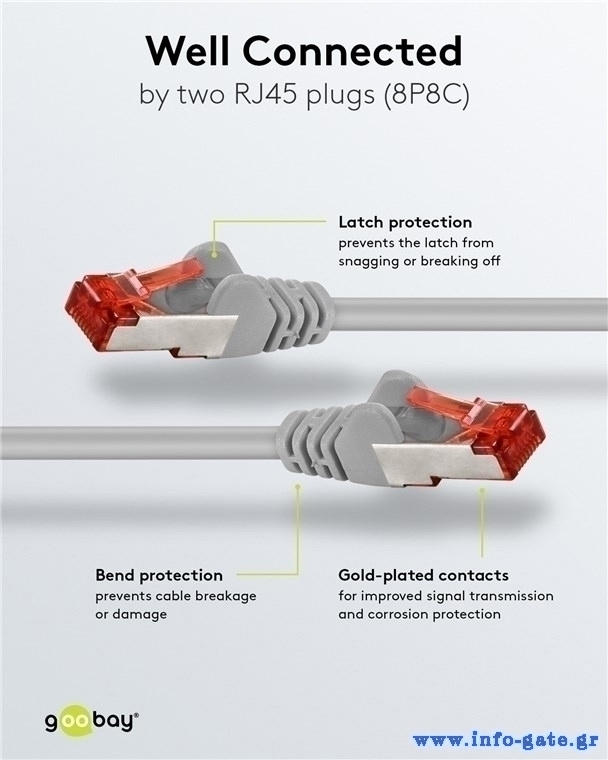 Τα καλώδια δικτύου της Goobay κατασκευάζονται από ποιοτικά υλικά, με τις υψηλότερες τεχνικές προδιαγραφές, προσφέροντας αξιόπιστη λειτουργία υψηλής απόδοσης, με αντοχή στον χρόνο.