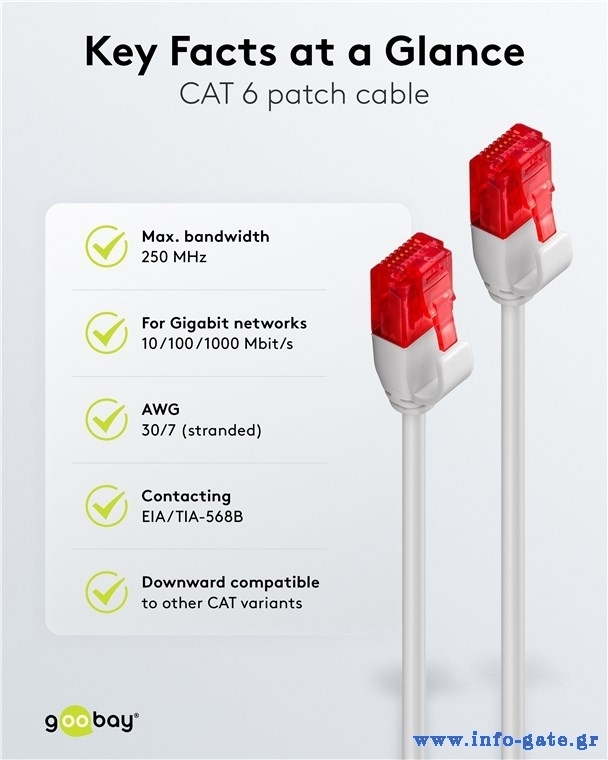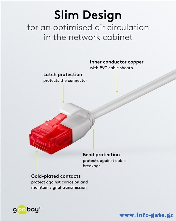 Τα καλώδια δικτύου της Goobay κατασκευάζονται από ποιοτικά υλικά, με τις υψηλότερες τεχνικές προδιαγραφές, προσφέροντας αξιόπιστη λειτουργία υψηλής απόδοσης, με αντοχή στον χρόνο.