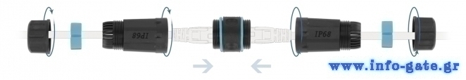 Αδιάβροχος αμφίδρομος σύνδεσμος καλωδίου RJ45 Cat.6A ιδανικός για συνδέσεις ethernet σε εξωτερικούς χώρους.
