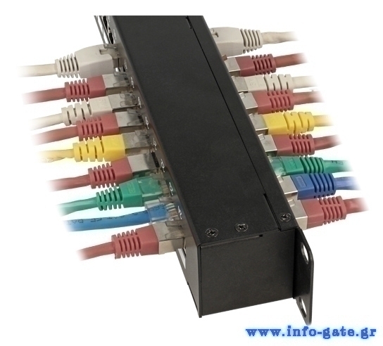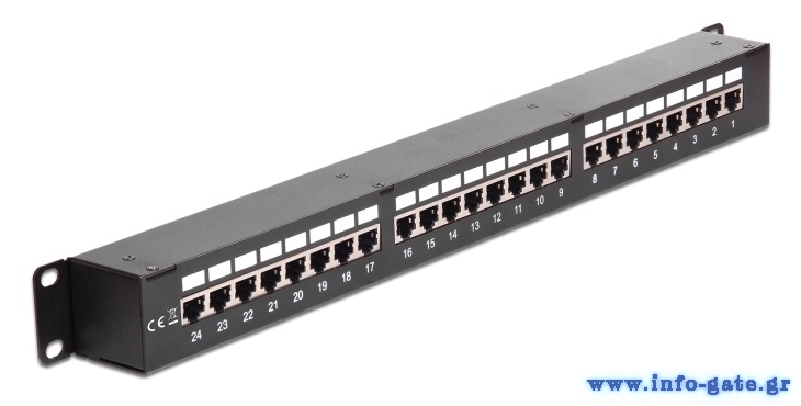 Patch panel της Delock που μπορεί να τοποθετηθεί σε 19" rack. Οι υποδοχές στο μπροστινό και πίσω μέρος του panel παρέχουν βολικές συνδέσεις για 24x RJ45 καλώδια στο μπροστινό μέρος και 24x RJ45 καλώδια στο πίσω μέρος.