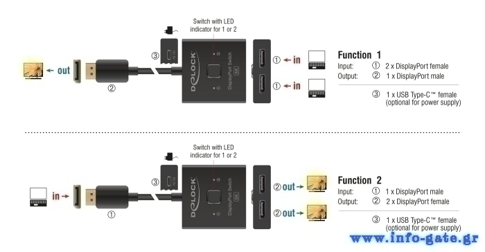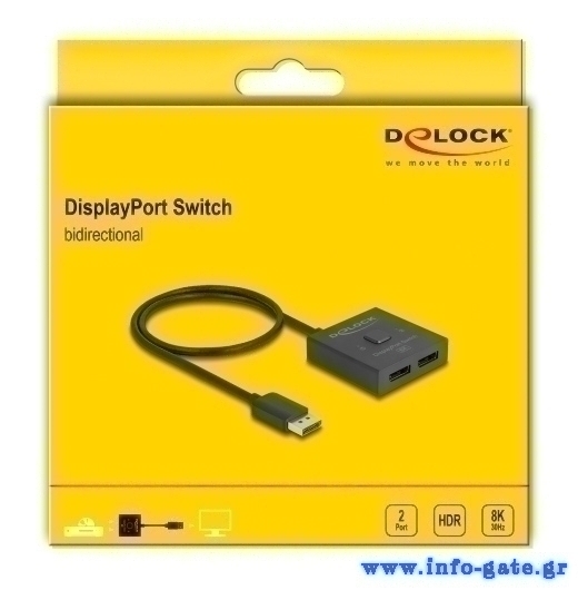 Αυτό το DisplayPort switch από τη Delock είναι ένα bidirectional switch για τη σύνδεση διαφορετικών συσκευών με υποδοχή DisplayPort.