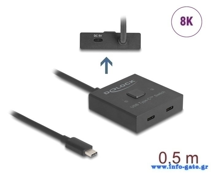 DELOCK USB-C switch 18911, 2 σε 1 bidirectional, 10Gbps, 8K, 100W, μαύρο