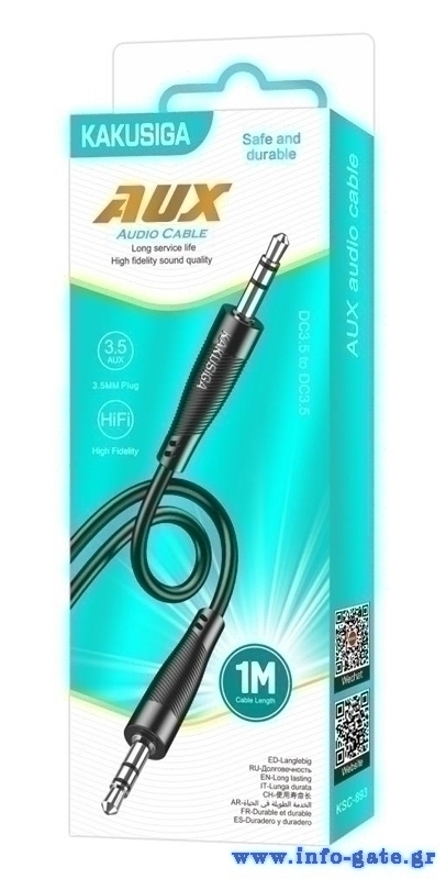 KAKUSIGA καλώδιο ήχου 3.5mm KSC-893, AUX, 1m, μαύρο