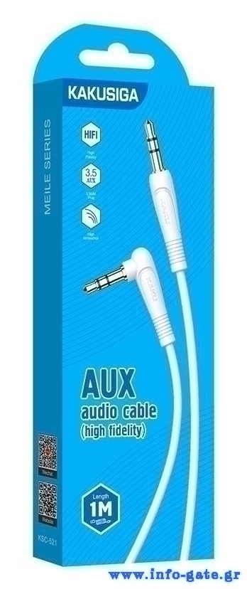 KAKUSIGA καλώδιο ήχου 3.5mm KSC-521, AUX, 90°, HiFi 1m, λευκό