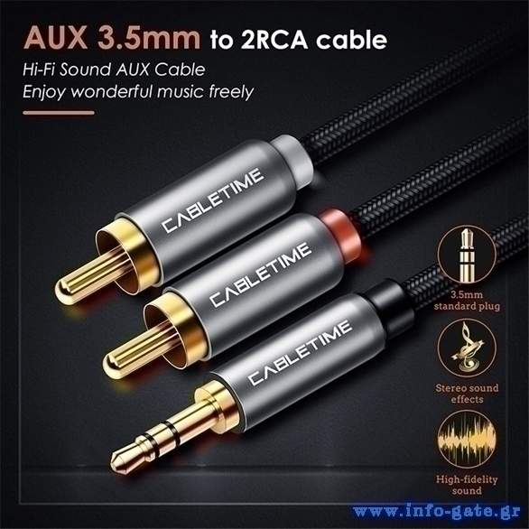 CABLETIME καλώδιο ήχου 3.5mm σε 2x RCA CT-P12G, 3m, μαύρο