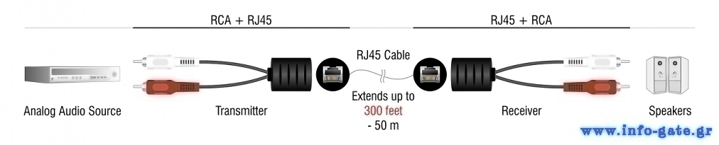 Το σετ αποτελείται από 2 αντάπτορες, από 2x RCA σε υποδοχή RJ45.