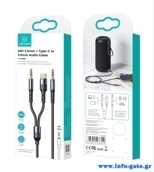 Καλώδιο ήχου της Usams, ιδανικό για την σύνδεση συσκευών με θύρα USB-C και 3.5mm όπως smartphones, desktops και laptops με συσκευές ήχου με θύρα 3.5mm όπως ηχεία, ακουστικά κ.α.
