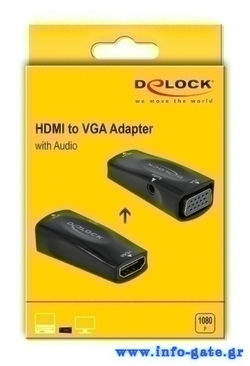 Αυτός ο αντάπτορας της Delock μπορεί να χρησιμοποιηθεί για τη σύνδεση μιας οθόνης VGA σε μια ελεύθερη Θύρα HDMI του desktop ή laptop σας. Εκτός από εικόνα και βίντεο, μέσω της υποδοχής 3.5mm μπορεί να μεταφέρει και ήχο.
