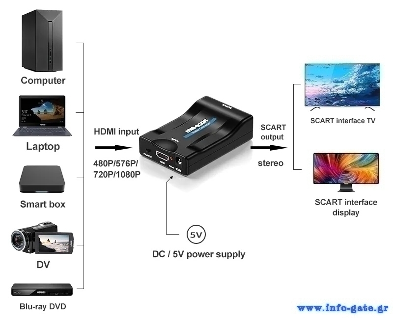 Αντάπτορας SCART σε HDMI CAB-H152, 10.2Gbps, NTSC & PAL, μαύρος