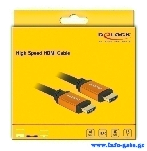 DELOCK καλώδιο HDMI 85728, 8K/60Hz, 48 Gbps, eARC, HDR, 1.5m, μαύρο
