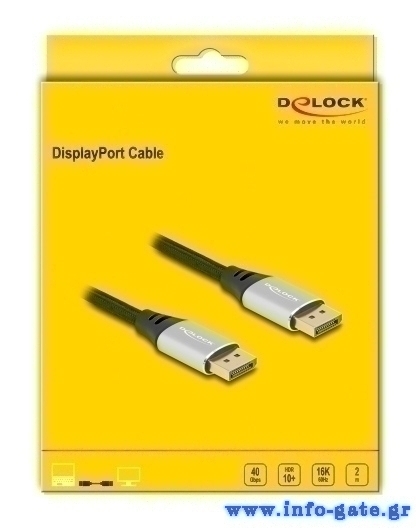 DELOCK καλώδιο DisplayPort 2.1 80634, 16K/60Hz, 40 Gbps, 2m, μαύρο