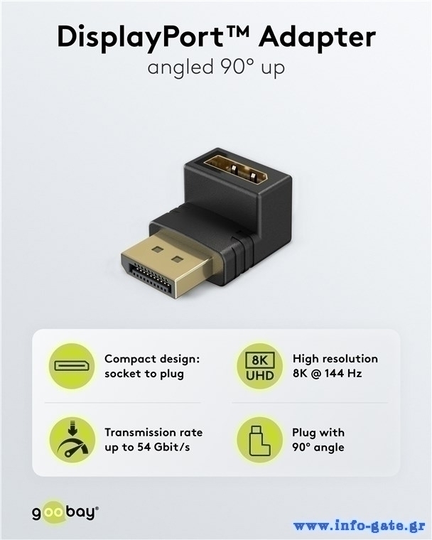 GOOBAY αντάπτορας DisplayPort 77129, 8K/144Hz, γωνιακός, μαύρος