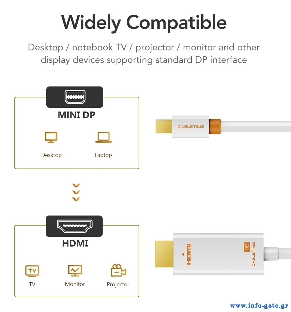 CABLETIME καλώδιο mini DisplayPort σε HDMI CT-AV588-03G, 1080p/60Hz, 1m, λευκό