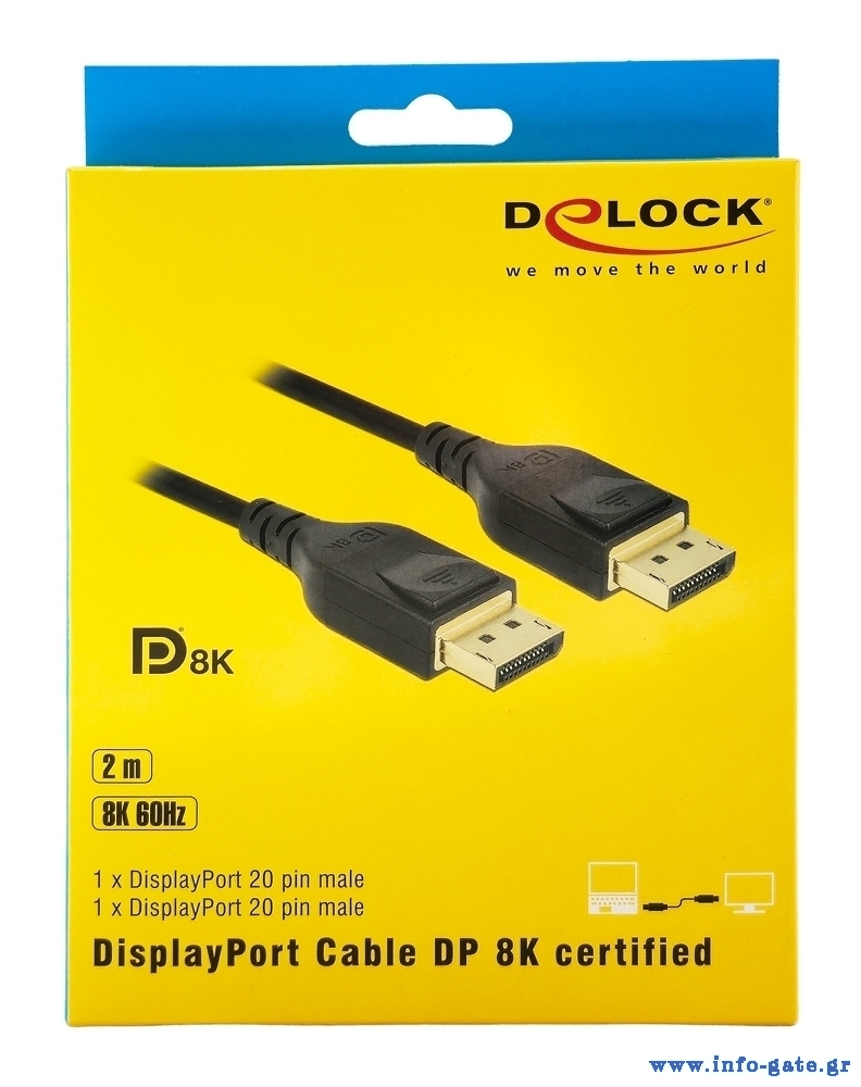 DELOCK καλώδιο DisplayPort 85660, certified, 8K/60Hz, 32.4 Gbps, 2m, μαύρο