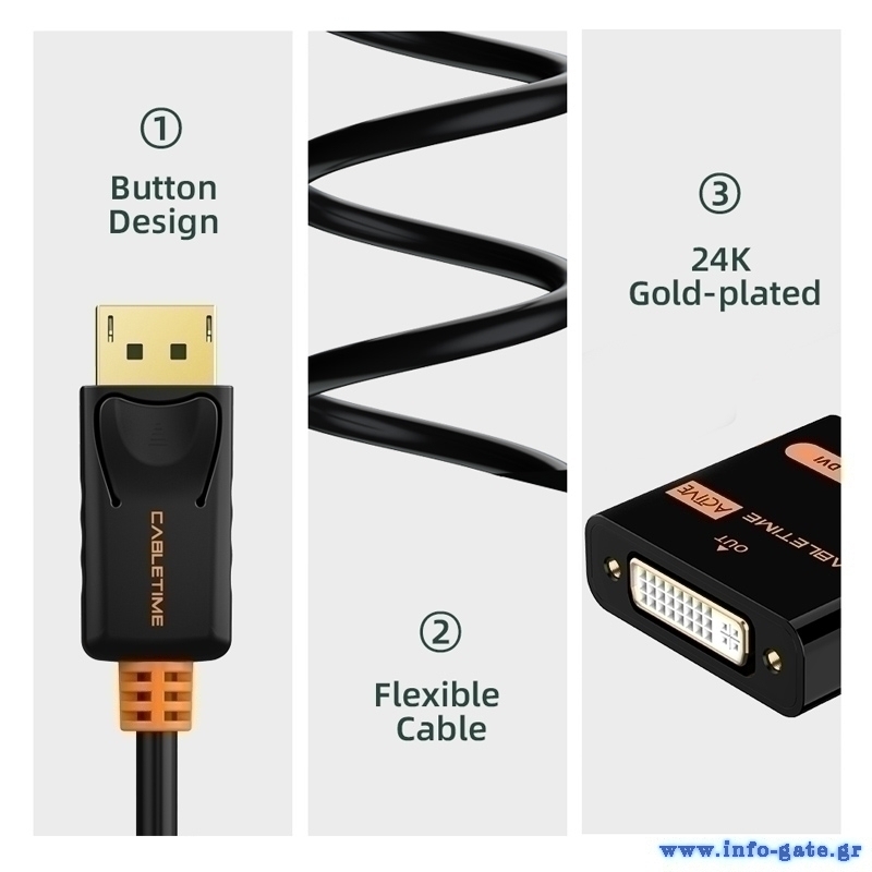 CABLETIME αντάπτορας DisplayPort σε DVI CT-02G, 1080p, μαύρος