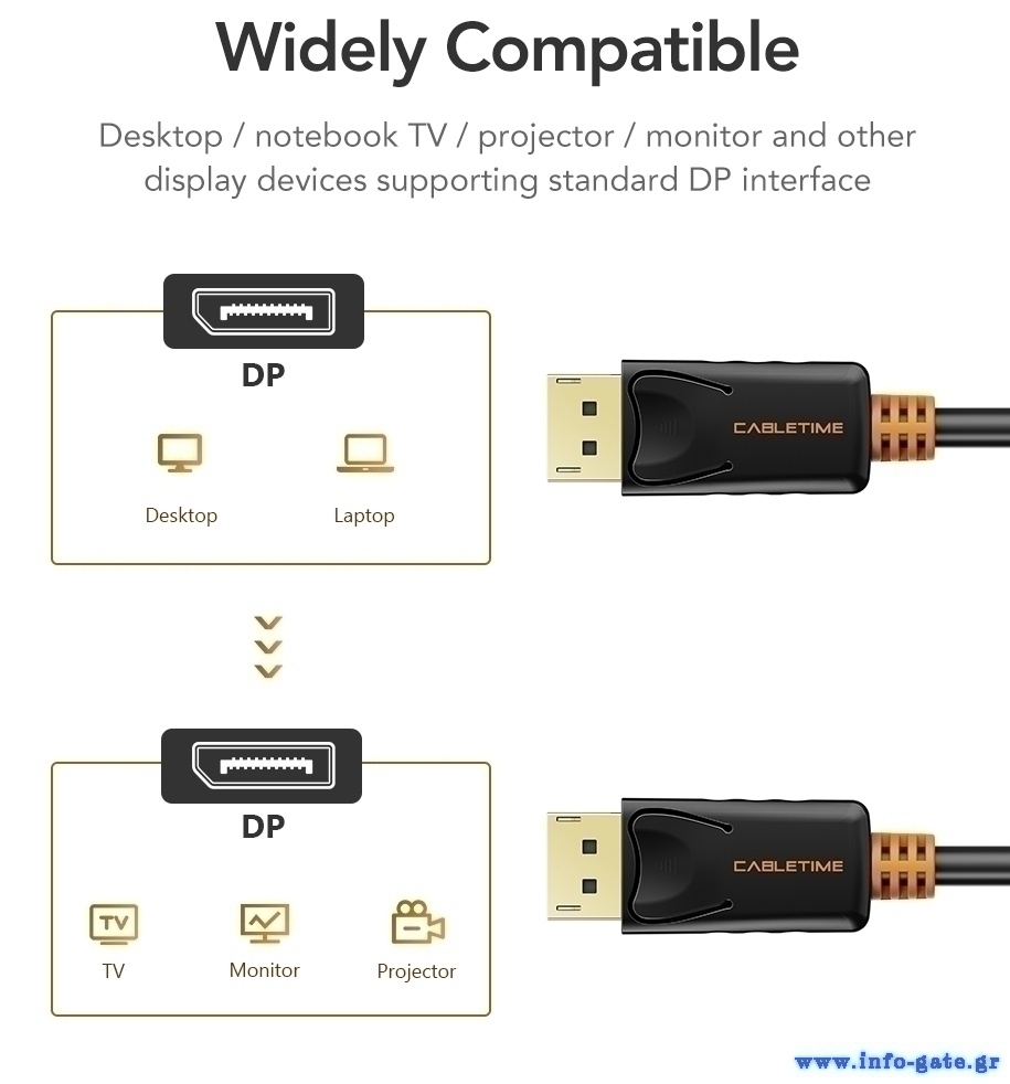 CABLETIME καλώδιο DisplayPort CT-01G, 4K/60Hz, 4.5m, μαύρο