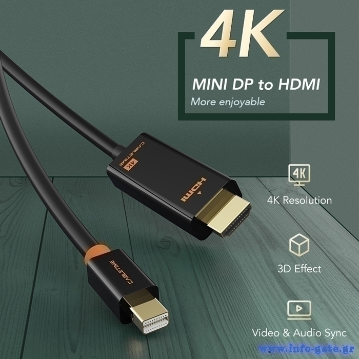 CABLETIME καλώδιο mini DisplayPort σε HDMI CT-03G4K60, 4K, 1.8m, λευκό