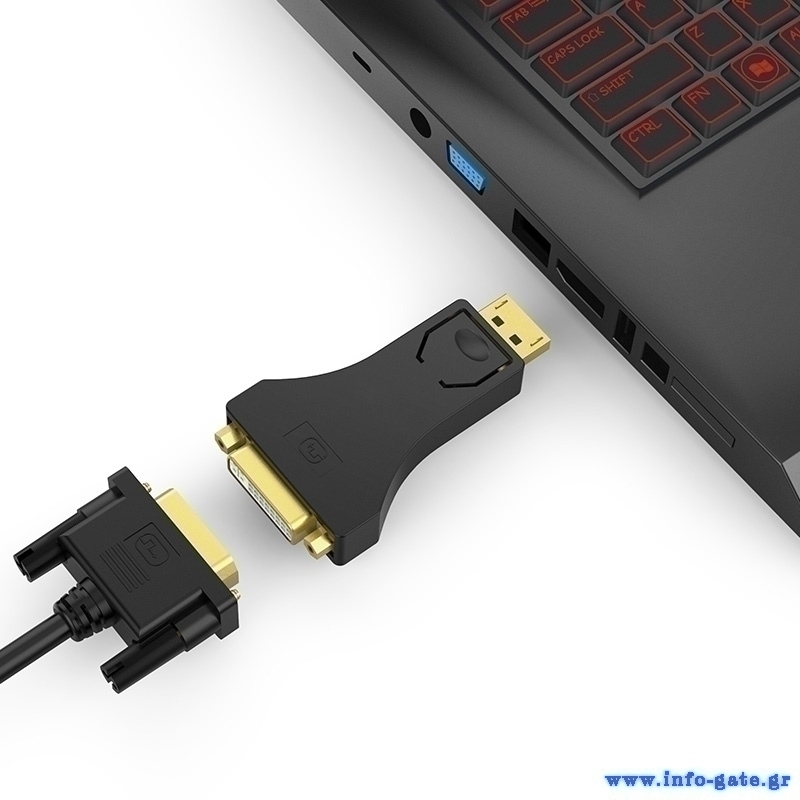 POWERTECH αντάπτορας DisplayPort σε DVI CAB-DP062, passive 1080p, μαύρος
