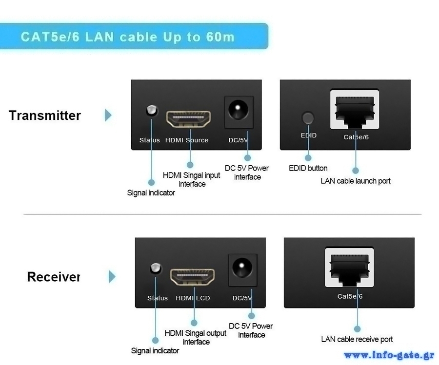 Μήκος καλωδίου μεταξύ transmitter και receiver: έως 60m