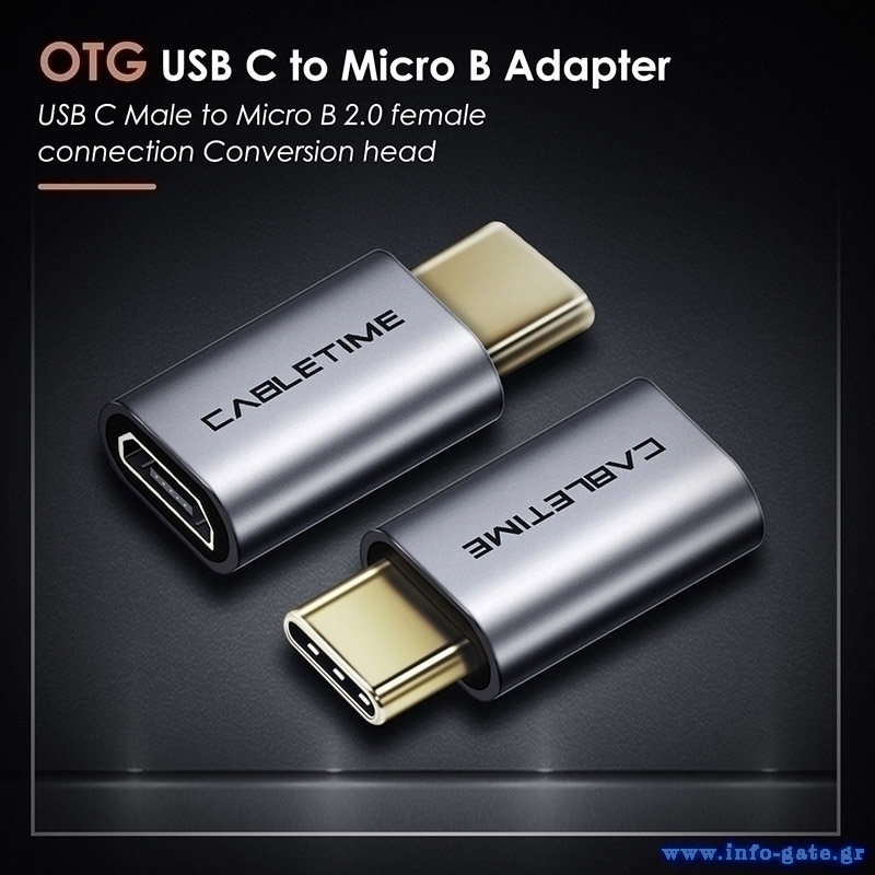 CABLETIME αντάπτορας USB-C σε micro USB CT-CMMCBF, 480Mbps, γκρι