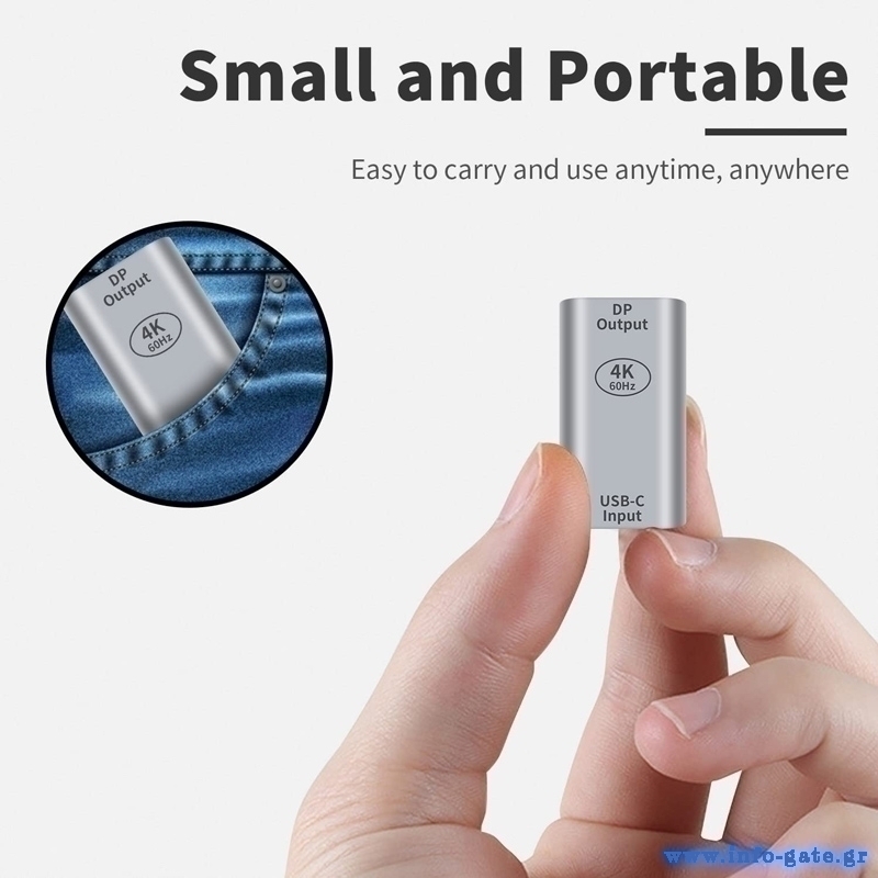 POWERTECH αντάπτορας USB-C σε DisplayPort PTH-097, 4K/60Hz, γκρι