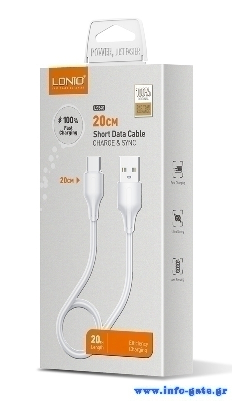 LDNIO καλώδιο USB-C σε USB LS540, 2.4A, 20cm, λευκό
