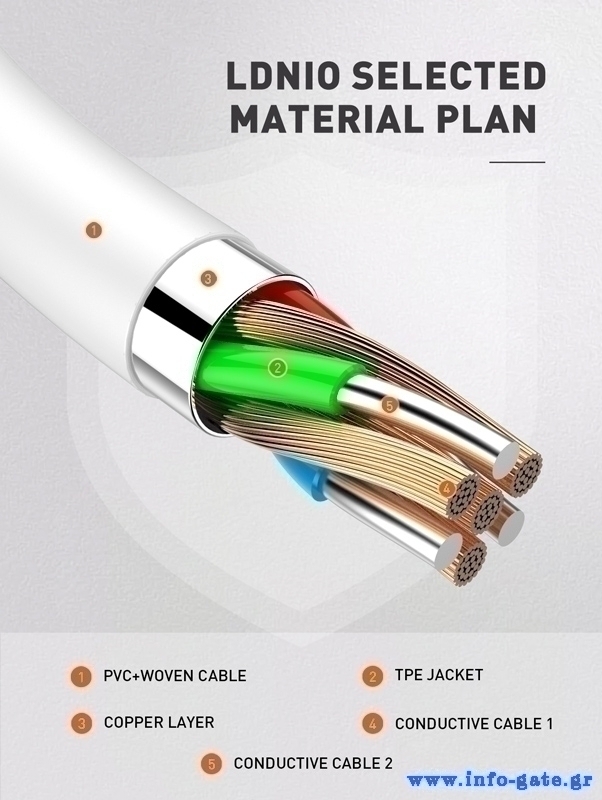 Καλώδιο φόρτισης και μεταφοράς δεδομένων Lightning σε USB-C της LDNIO.