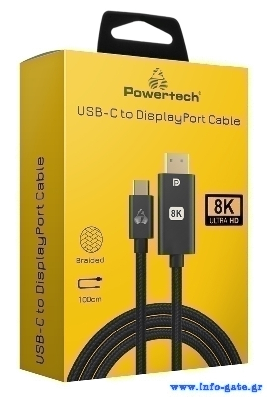 POWERTECH καλώδιο USB-C σε DisplayPort PTR-0138, 8K/120Hz, 1m, μαύρο