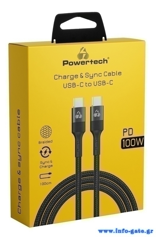 POWERTECH καλώδιο USB-C PTR-0132, PD 100W, copper, 1m, μαύρο