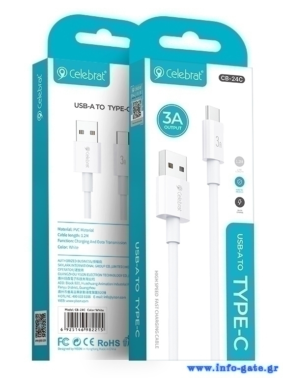 CELEBRAT καλώδιο USB-C σε USB CB-24C, 3A, 1.2m, λευκό