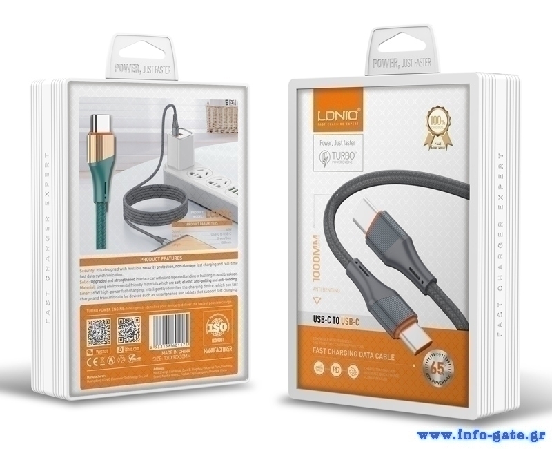 Καλώδιο φόρτισης και μεταφοράς δεδομένων USB-C σε USB-C της LDNIO.