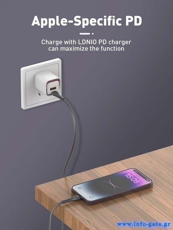 Καλώδιο φόρτισης και μεταφοράς δεδομένων Lightning σε USB-C της LDNIO.