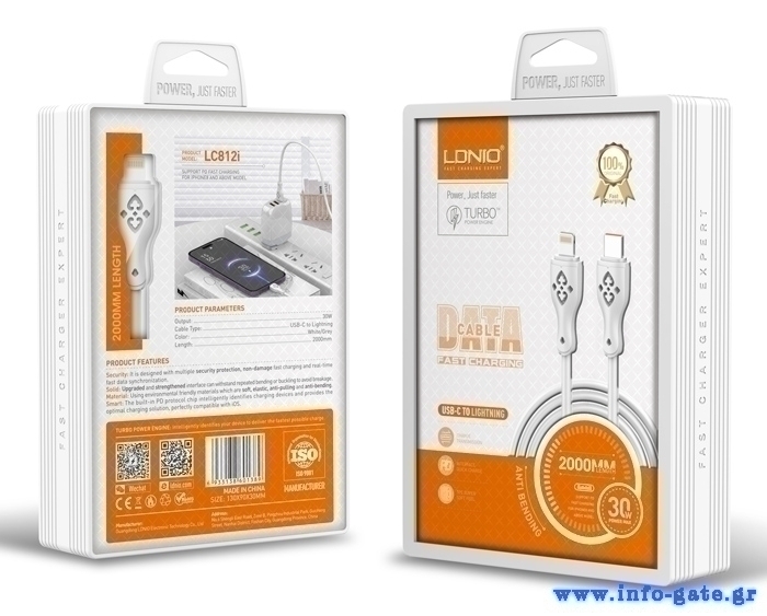 LDNIO καλώδιο Lightning σε USB-C LC812I, 30W PD, 2m, λευκό