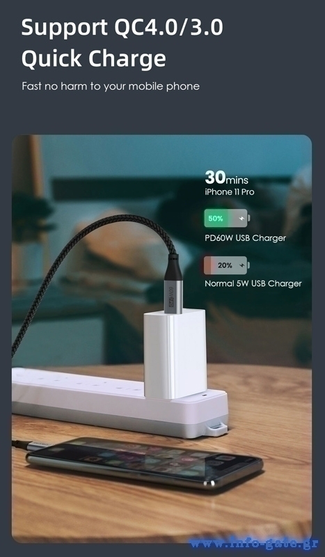 -γρήγορη φόρτιση με απόδοση έως 60W