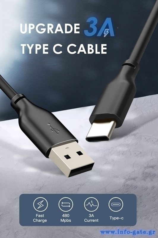CABLETIME καλώδιο USB-C σε USB CT-CMAMN1, 3A, 480Mbps, 1m, μπλε