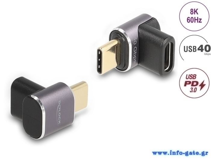 DELOCK αντάπτορας USB-C 60059, αρσενικό σε θηλυκό, 100W, 40Gbps, γκρι