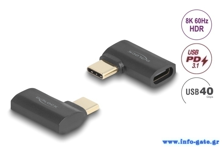 DELOCK αντάπτορας USB-C 60245, αρσενικό σε θηλυκό, 240W, 40Gbps, μαύρος