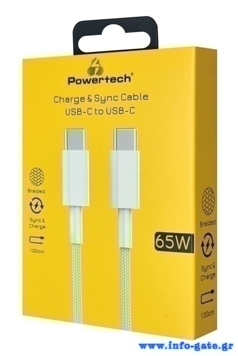 POWERTECH καλώδιο USB-C PTR-0181, 65W, 480Mbps, 1m, λευκό